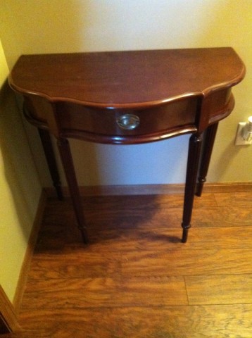 An adorable scallop-edged table makeover: